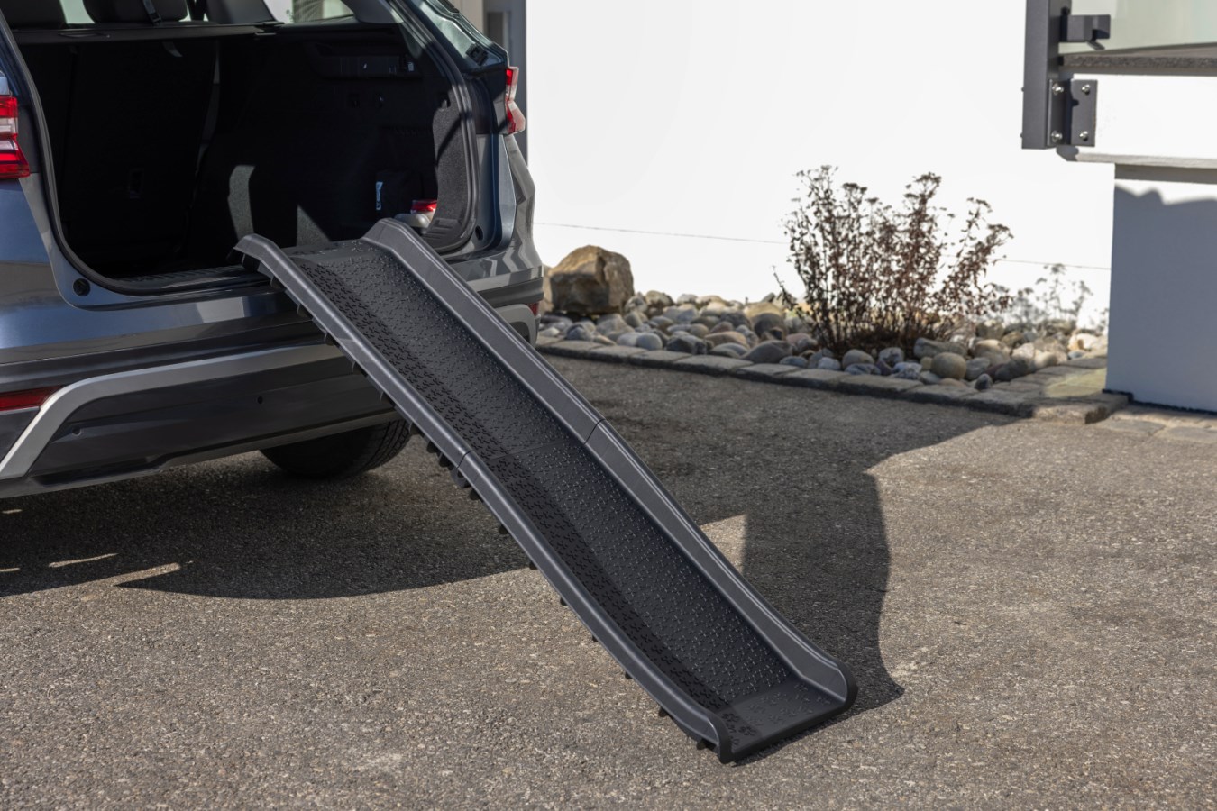 Vielseitige Anwendung: Ob als Kofferraumrampe oder zur Überwindung von Höhenunterschieden, diese Rampe ist vielseitig einsetzbar und erleichtert den Alltag von Hundebesitzern.