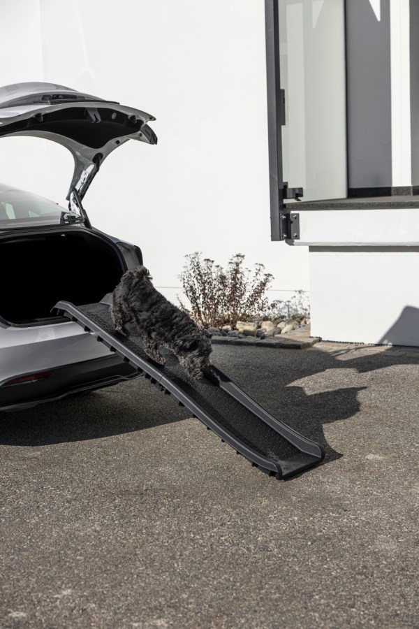 Praktische Hunderampe: Diese Rampe erleichtert älteren oder unmobilen Hunden den Einstieg in den Kofferraum. Sie bietet eine sichere und bequeme Lösung für Hunde bis 60 kg.