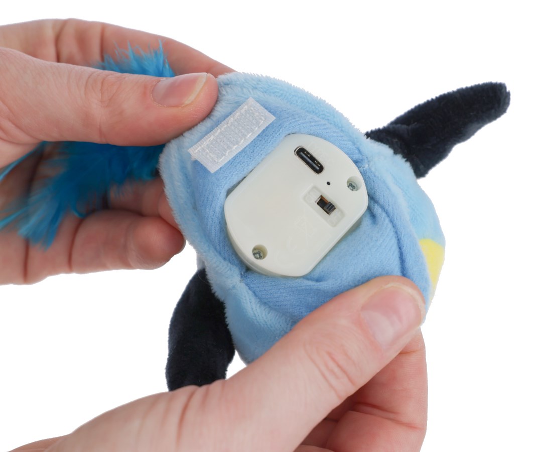 Ausgestattet mit einem Zwitschersound und flatternden Flügeln ahmt es das Verhalten eines echten Vogels nach und regt so den natürlichen Jagd- und Spieltrieb Ihrer Katze an. Der weiche Plüschbezug sorgt für eine angenehme Haptik, während echte Federn dem Spielzeug zusätzliche Authentizität verleihen.