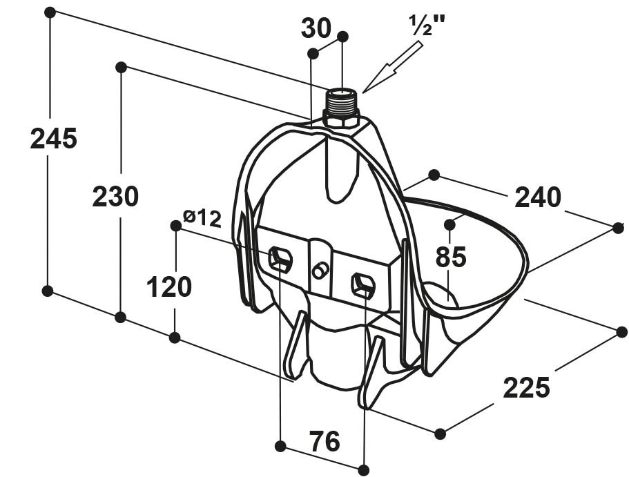 Das Tränkebecken ist mit einem Wasseranschluss von 1/2 Zoll ausgestattet, der von oben angeschlossen wird, was die Installation besonders einfach und flexibel gestaltet.