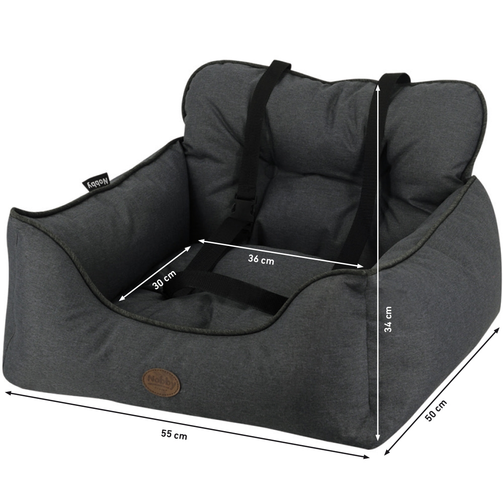 Autositz und Reisebett Nobby Kadek für kleine Hunde - Hundebett, Schondecke mit Anschnallgurt und Befestigung am Beifahrersitz
