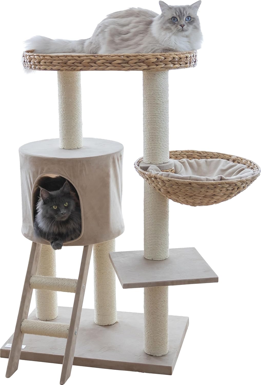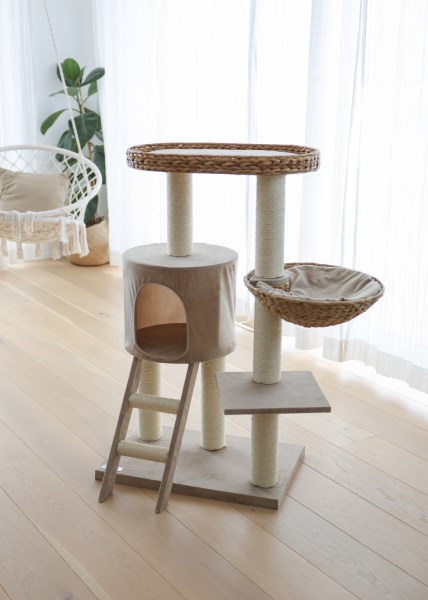 Der Banana Leaf Kratzbaum ist ein hochwertiger und eleganter Katzenbaum, der aus geflochtenen Bananenblättern besteht. Bananenblätter sind ein natürliches und nachhaltiges Material, das sehr widerstandsfähig gegen Abnutzung durch Krallen ist. Außerdem hat es eine schöne Optik, die sich harmonisch in jede Wohnung einfügt.