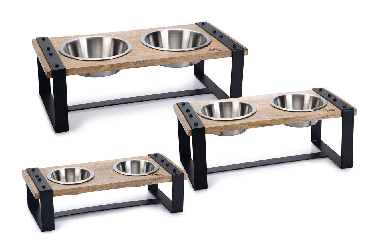 Der tolle Napfständer ist ein wirklicher Hingucker in jeder Wohnung. Dieser ist zusätzlich noch absolut robust und stabil, ein Umwerfen der Näpfe ist hier fast unmöglich. Die schwarzen Metallelemente im rustikalen Stil, verleihen der Hundebar (Katzenbar) hohe Stabilität. Das braune Holzelement ist aus dem beliebten und ebenfalls sehr stabilen Mangoholz gefertigt.