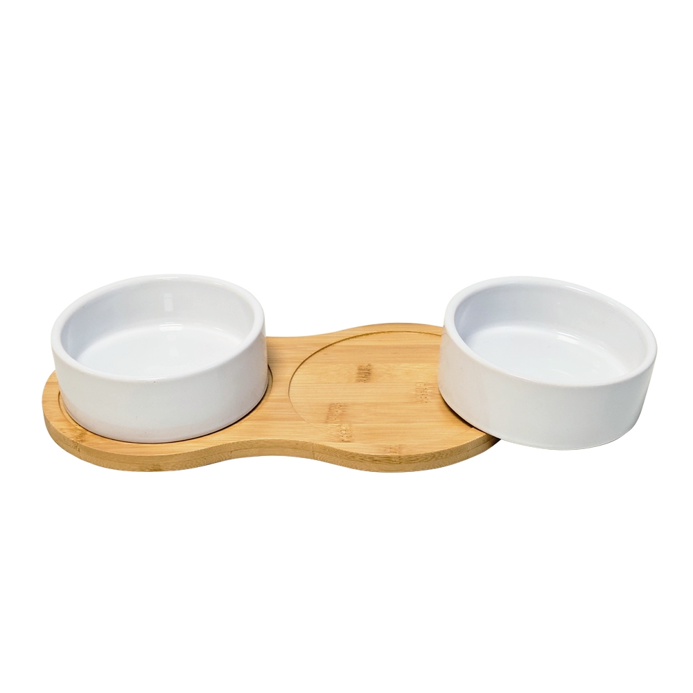 Startseite » Hundeshop » Näpfe » Napfständer » Futterbar für Katzen, Chihuahua und andere kleine Hunderassen - Nobby Bambasso - Napfständer Bambusholz, Keramiknäpfe
