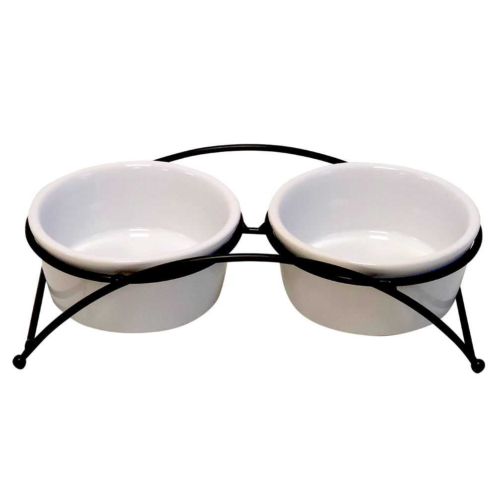 - stilvoll und praktisch: Eleganter Metallständer mit zwei herausnehmbaren Keramiknäpfen