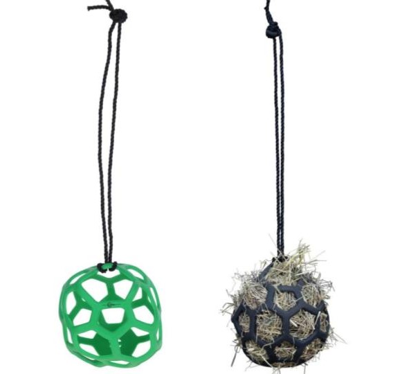 - vertreibt Langeweile und fördert verlangsamte und magenschonende Heuaufnahme
