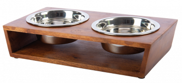 Startseite » Hundeshop » Näpfe » Napfständer » Holz-Napfständer Petlando Mangoo - Hundebar - Katzenbar in drei Größen mit Edelstahlnäpfen - Futterbar Katzen Hunde