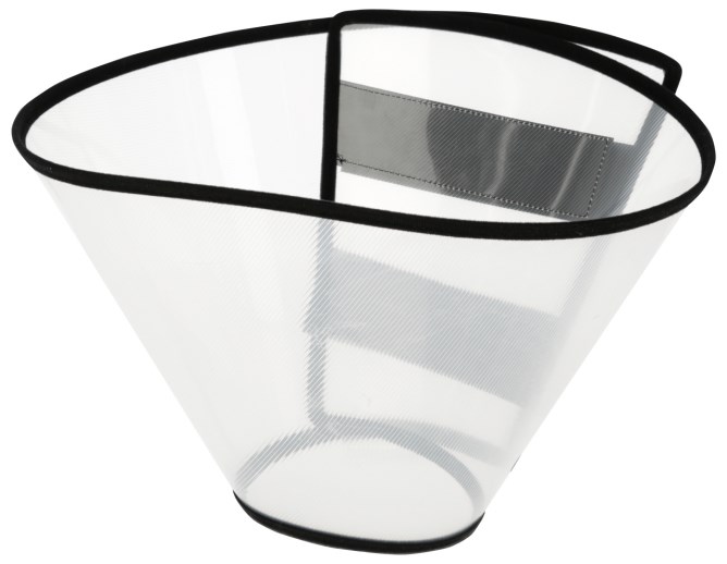 Die Halskrause ist aus Kunststoff gefertigt und hat eingefasste Ränder mit weichem Polyester, um den Komfort des Hundes zu erhöhen.