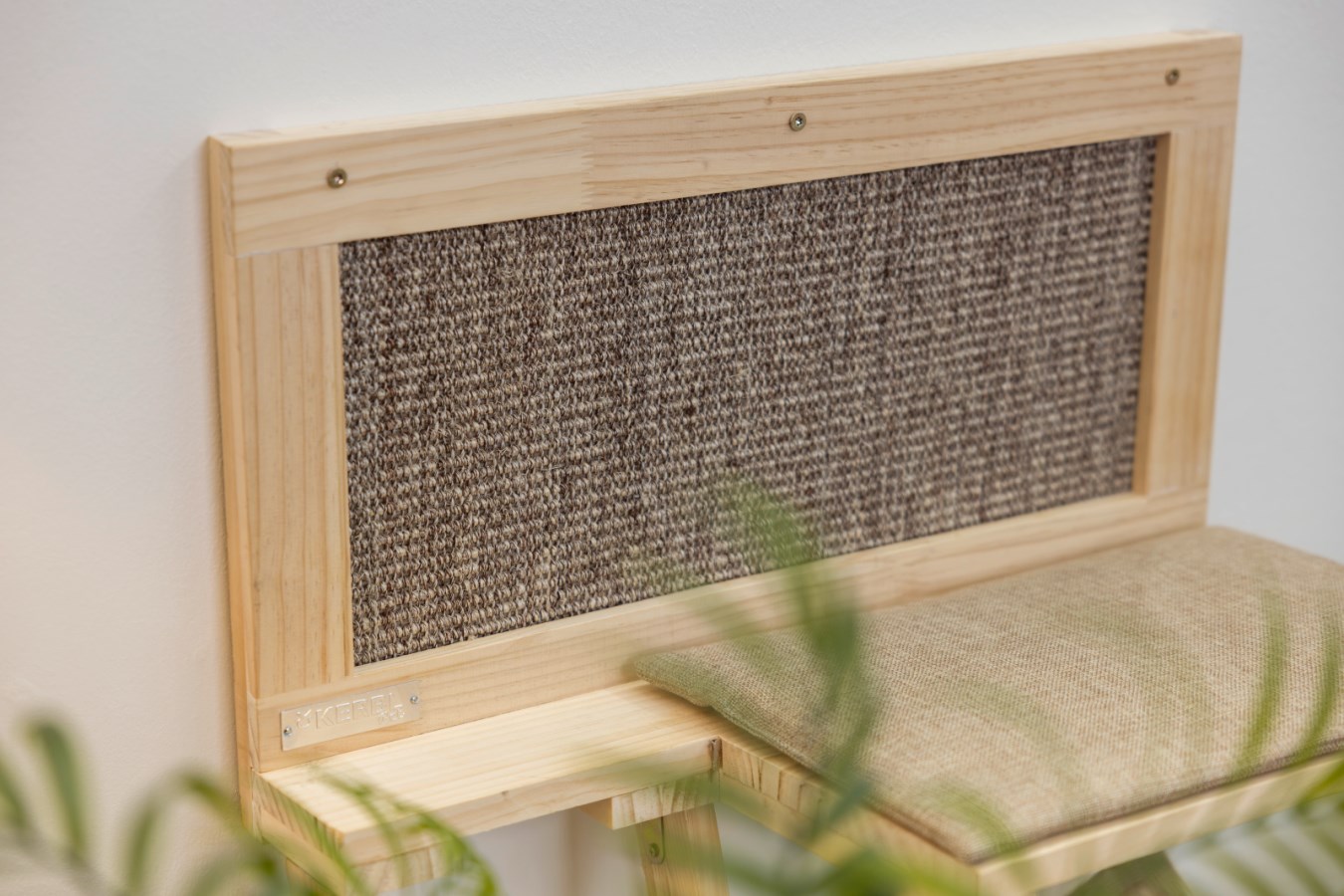 Ein stilvolles Wandliegebrett für Katzen, das nicht nur als gemütlicher Schlafplatz dient, sondern auch mit integrierten Kratzmöglichkeiten überzeugt. Perfekt für jeden Katzenhaushalt.