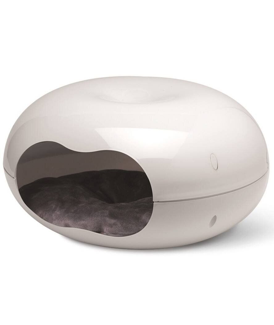 Die Katzenhöhle Cat home You Zoo Doonut ist eine runde Höhle aus Kunststoff. Die Schlafhöhle ist nicht nur ein gemütlicher Schlafplatz für Ihre Katze, sondern auch ein echter Hingucker in Ihrer Wohnung. Die Höhle hat eine Größe von 47 x 49 x 27 cm, sodass auch größere Katzen und kleine Hunde wie zum Beispiel Chihuahuas genug Platz haben. Der Eingang ist 26 x 13,5 / 16 cm groß. Die Höhle ist in weiß erhältlich