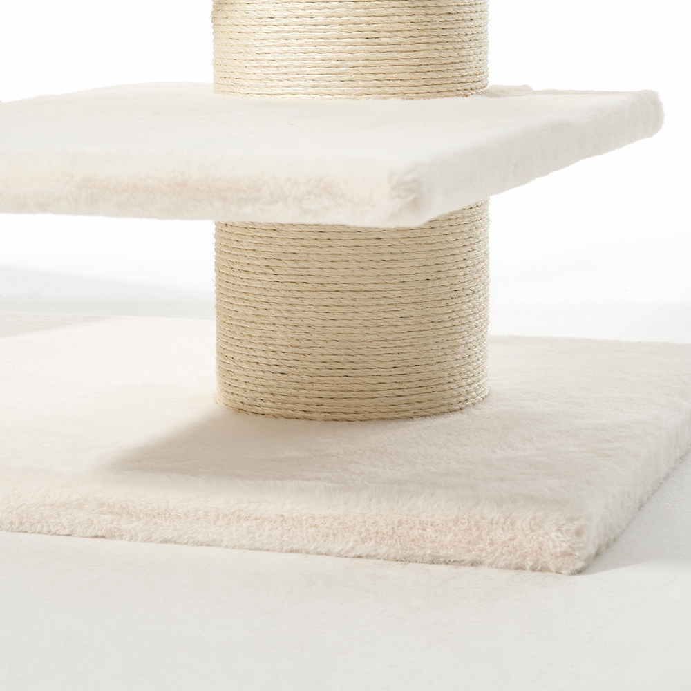 Der Kratzbaum Binka verfügt über zwei große Höhlen, die jeweils mit einer Kratzfläche aus Sisal außen ausgestattet sind und Ihrer Katze sichere Rückzugsorte bieten. Zusätzlich sorgen eine weiche Liegemulde, zahlreiche Liegeflächen in verschiedenen Höhen sowie ein Katzenbett mit Rand für maximalen Komfort und abwechslungsreiche Ruheplätze. Die Liegeflächen sind großzügig gestaltet und mit weichem Plüschmaterial bezogen, das Ihrer Katze ein angenehmes Liegegefühl schenkt.
