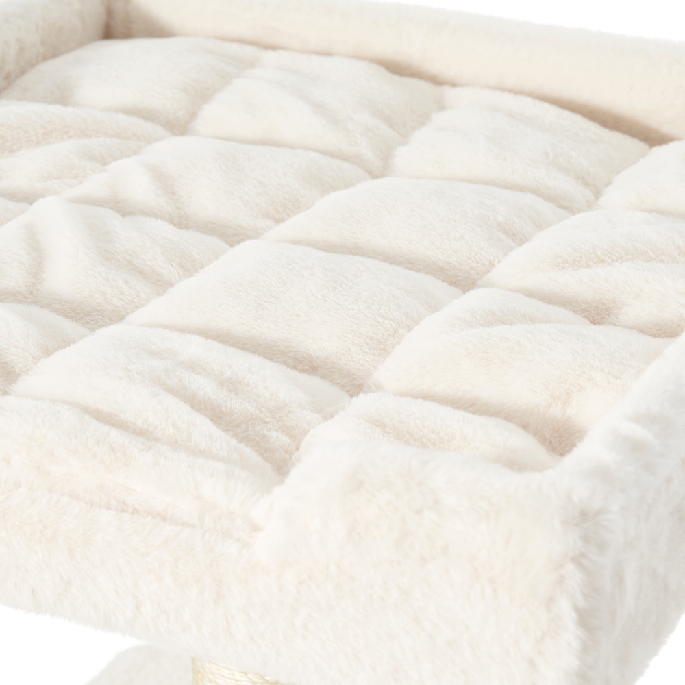 Unterschiedliche Höhen der Plattformen ermöglichen es Ihrer Katze, ihre Umgebung aus verschiedenen Perspektiven zu beobachten und sich je nach Stimmung zurückzuziehen oder aktiv zu sein. Die weiche Liegemulde bietet eine besonders gemütliche Vertiefung, die zum Einkuscheln einlädt, während das Katzenbett mit erhöhtem Rand zusätzlichen Schutz und Geborgenheit vermittelt – ideal für Katzen, die sich gerne einrollen und geschützt fühlen.