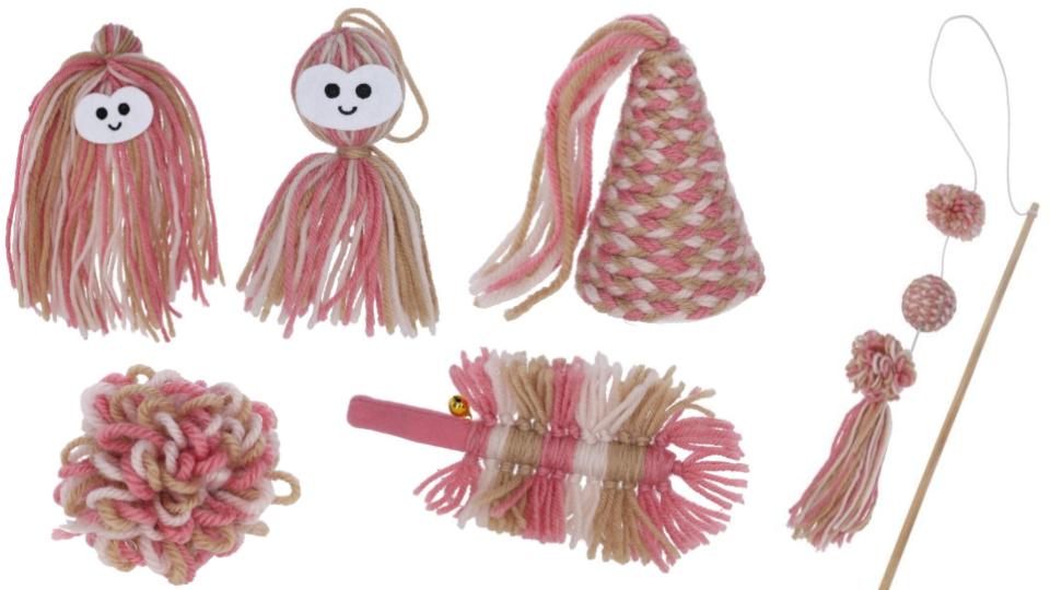 Das 6 teilige Spielzeugset für Katzen besteht aus:- Mopp mit zotteligen Fäden ( 12 x 3 cm )