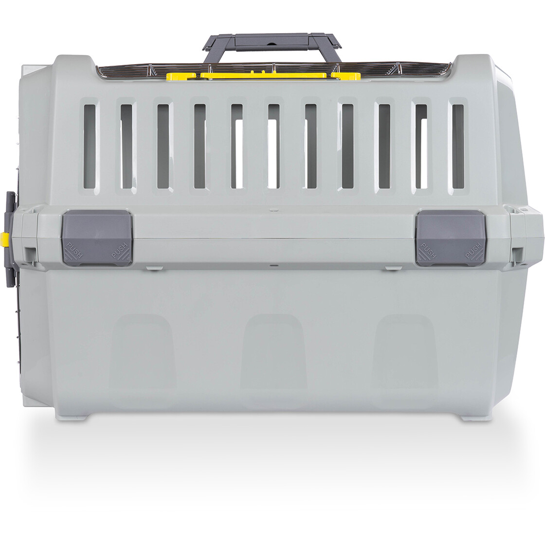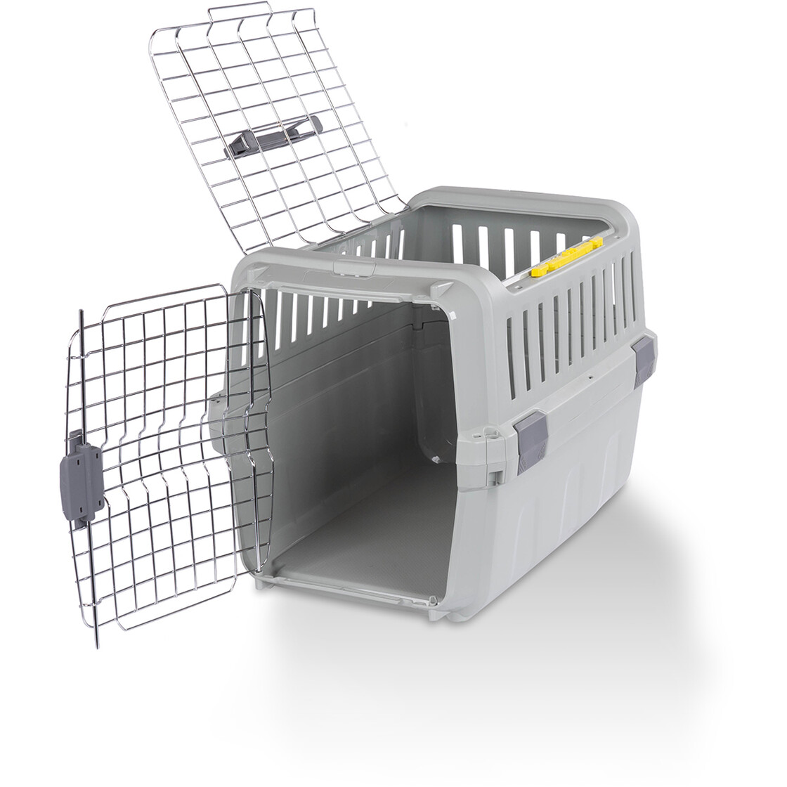 Der einfach zu bedienende Verschluss sorgt dafür, dass Sie die verchromte Metalltür jederzeit im Handumdrehen öffnen und schließen können. Die Mehrpunkt-Frontverriegelung sorgt für zusätzliche Sicherheit beim Transport Ihres Vierbeiners. Die Box lässt sich von vorn sowie von oben öffnen und ermöglicht jederzeit direkten Zugang zum Tier.