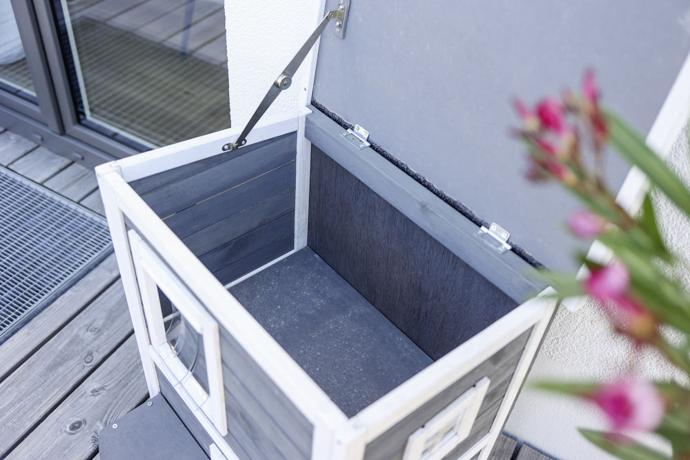 Das schicke Outdoor-Katzenhaus bietet idealen Schutz vor der Witterung, auch im Winter. Das Katzenhaus kann ganzjährig als Unterschlupf für Freigänger dienen. Gerade berufstätige Katzenbesitzer von Freigängerkatzen kennen das Problem in den frühen Morgenstunden oder späten Abendstunden, man muss los und die Katze ist nicht pünktlich zurück und man möchte das eigene Tier nicht bei Wind und Wetter vor der Tür sitzen lassen. Mit diesem Outdoor- Katzenhaus lassen sich problemlos ein paar Stunden überbrücken bis Sie wieder daheim sind. So müssen Sie sich keine Sorgen um Ihre Samtpfote machen, denn diese kann sich völlig entspannt und geschützt zurück ziehen.