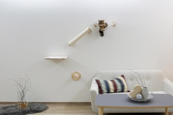 Alle Katzen lieben es zu klettern und aus der Höhe ihre Umwelt zu beobachten. Vor allem reine Hauskatzen benötigen verschiedene Klettermöglichkeiten um die natürlichen Bedürfnisse ausleben zu können. Die Kletterwand ist platzsparend und beansprucht keinen Platz auf dem Boden. So findet die Kletterwand auch in der kleinsten Wohnung ihren Platz.