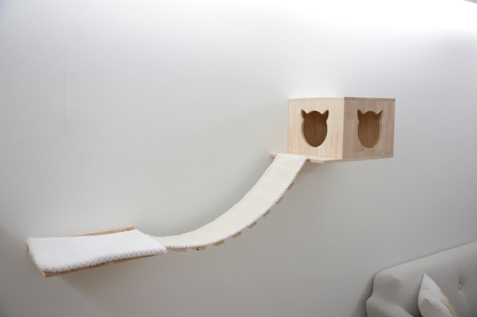 Das siebenteilige Massivholz-Set zur individuellen Wandmontage bietet Ihrer Katze vielseitige Spiel-, Schlaf- und Kratzmöglichkeiten . Es ist ideal für Wohnzimmer oder Katzenzimmer geeignet und schafft eine sichere Umgebung für Ihre Katze.