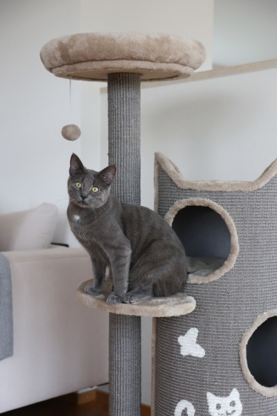 - der geräumige Kratzbaum bietet mehrere Liegeflächen auf unterschiedlichen Ebenen in und außerhalb der Kratztonne