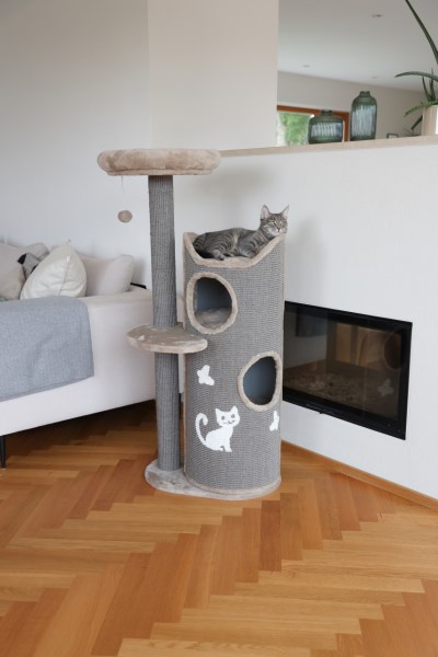 - abwechslungsreicher Kratzbaum mit einer großen Kratztonne mit vielen gemütlichen Liegemöglichkeiten
