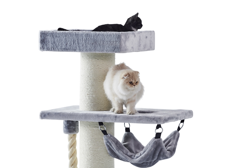 Die Farbe Grau des Kratzbaums fügt sich harmonisch in jede Wohnlandschaft ein und macht ihn zu einem stilvollen Accessoire in Ihrem Zuhause. Die besonders dicke Bodenplatte sorgt für eine hohe Standfestigkeit, was Ihrem vierbeinigen Freund ein sicheres Gefühl gibt.