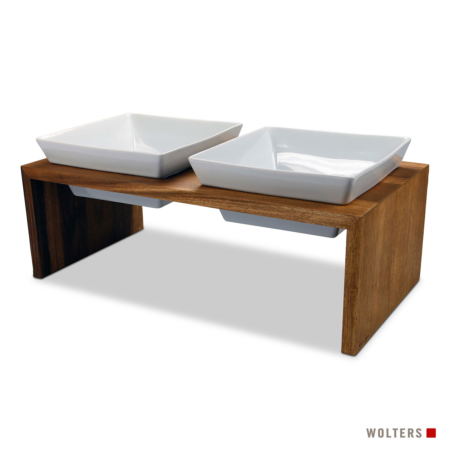 - M: 2 x 1,3 Liter - Holzständer: 52 x 26 x 15 cm ( für mittelgroße Hunde )