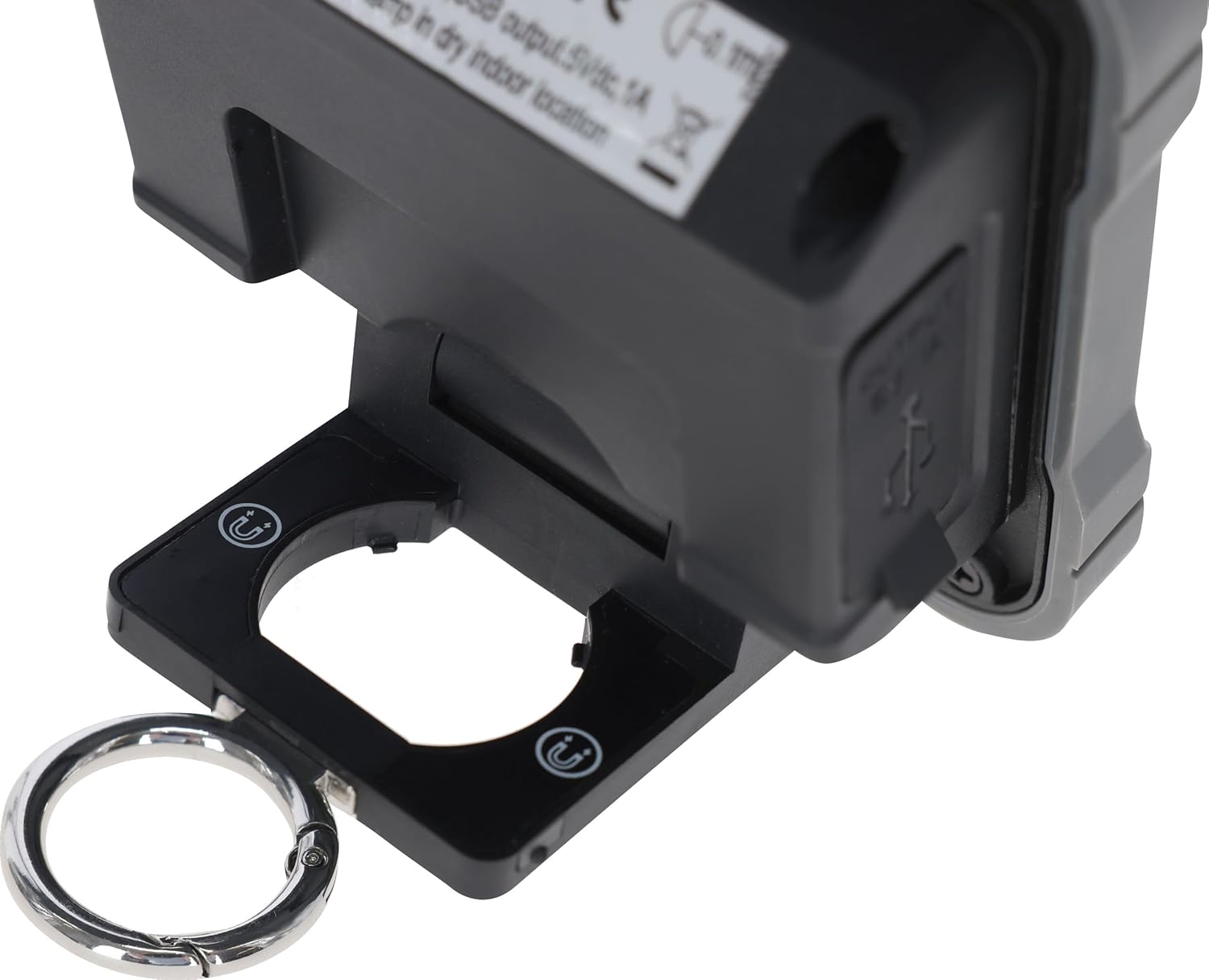 - Karabinerring und integrierter Magnet für flexible Montage
