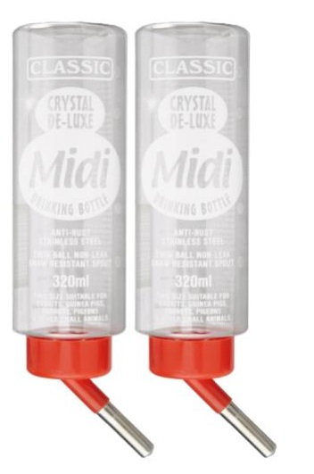 Nagertrinkflasche im Set. Zweier Set Nagertrinkflasche mit Doppelkugel Technik. Die Nager Trinkflaschen sind aus Kunststoff gefertigt und leicht zu reinigen. Das praktische Set aus Nager Trinkflaschen bietet Ihnen die Möglichkeit, direkt zwei Flaschen im Gehege Ihres Tieres zu befestigen oder Sie haben immer eine Flasche auf Ersatz. Falls mal eine Flasche kaputt geht oder sie diese intensiv reinigen möchten.