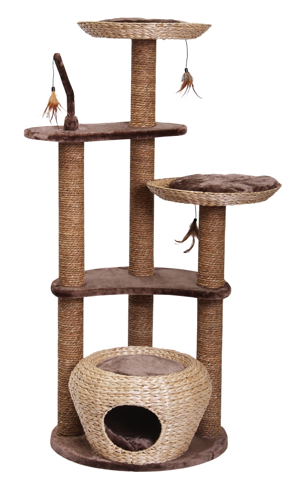 Katzen Kratzbaum Nobby Estaca [141cm] aus Wasserhyazinthe - mit Liegemulden, Schlafhöhle und Katzenspielzeug
