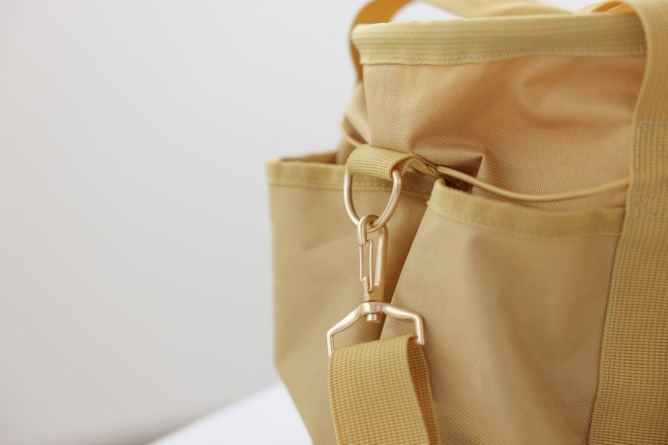 Die Tasche ist in einem sehr schönen und eleganten Goldfarbton gehalten und selbstverständlich aus schmutzabweisendem, pflegeleichtem sowie robustem 100 % Polyestermaterial gefertigt.