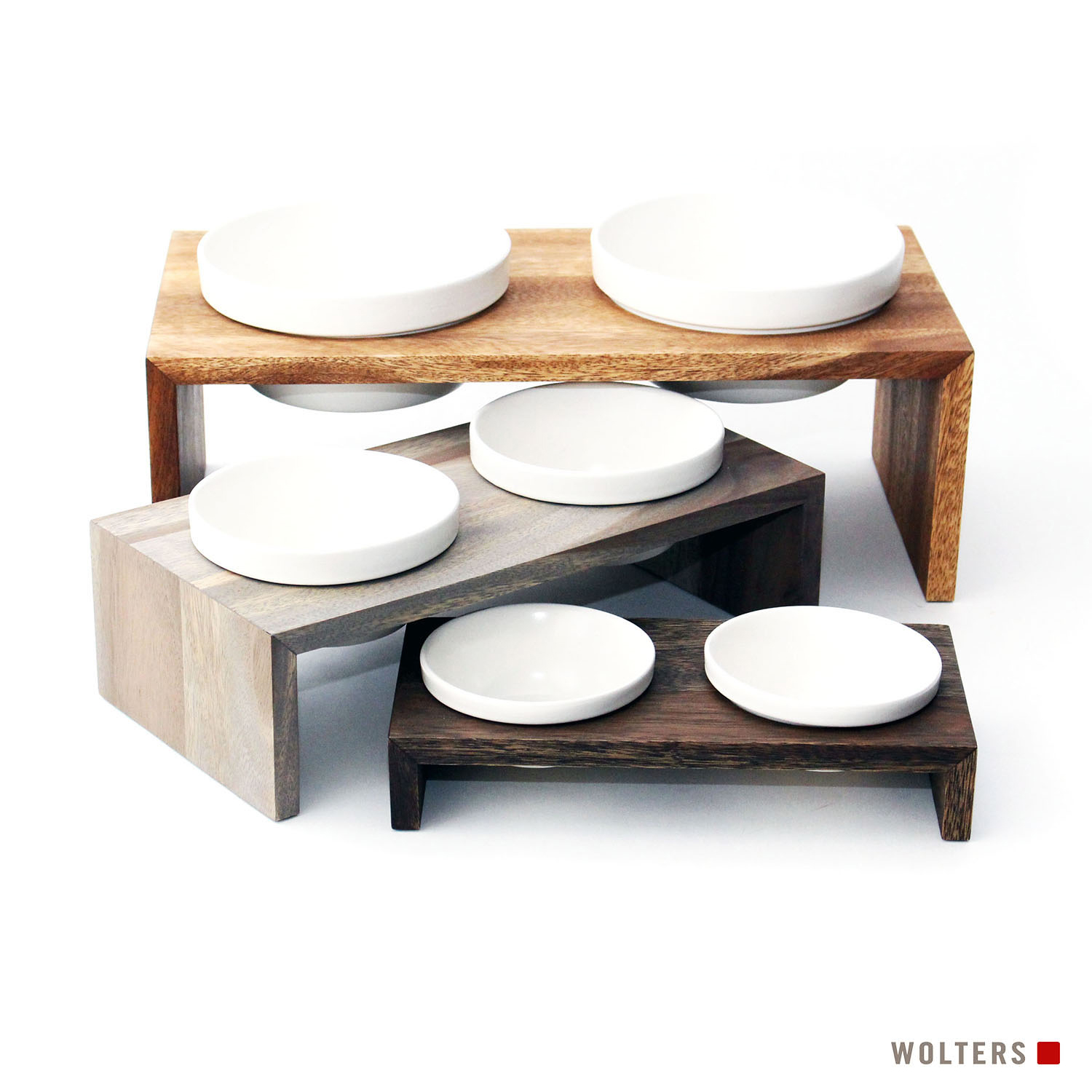 Wolters Doppelnapf Replus Gohan, Napfständer aus Vollholz, Futterbar für Hunde und Katzen, Porzellan-Näpfe